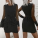 You have no wonder why all the eyes are focused on you when you don this little stunner. The see-through gauze spliced long sleeve design makes it full of flirty and sexy vibes. The fit silhouette and tie-belt design can help showcase your slender figure. So why not save this piece for your night events?