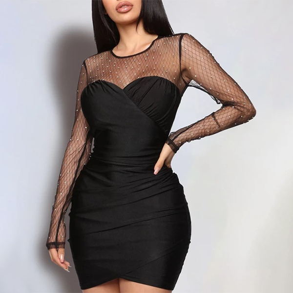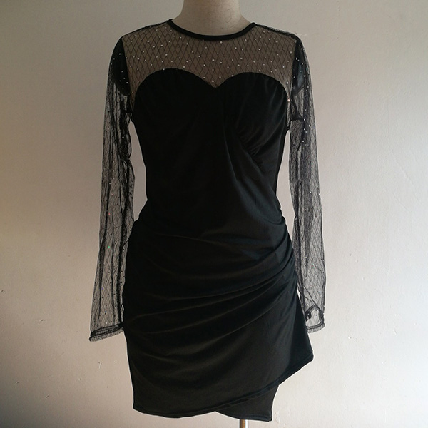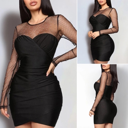 You are sure to draw everyone's eyes when you dress yourself up with this dress. The see-through gauze spliced design makes this piece look so sexy and alluring,while the fit silhouette design can portray your slender figure. When invited to some fancy events,this little stunner can be your wise choice.