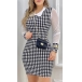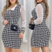 Sexy Gauze Spliced Long Sleeve Slim Fit Houndstooth Dress