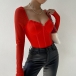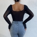 This bodysuit features gauze splicing long sleeves, a sweetheart neckline, corset-inspired design, and a bodysuit silhouette for a seductive and sophisticated look. Pair with jeans or skirt for a fashion look~
