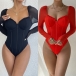 Sexy Gauze Spliced Long Sleeve Sweetheart Neckline Corset Bodysuit
