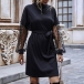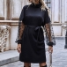 When the days get chilly,this long sleeve dress would be your wardrobe staple. The flattering black tone and fit silhouette design can better showcase your slender figure,while the gauze spliced design at the sleeve part will make this piece look more distinctive and attractive. It is a good chance to express your beauty and charm through this little piece.