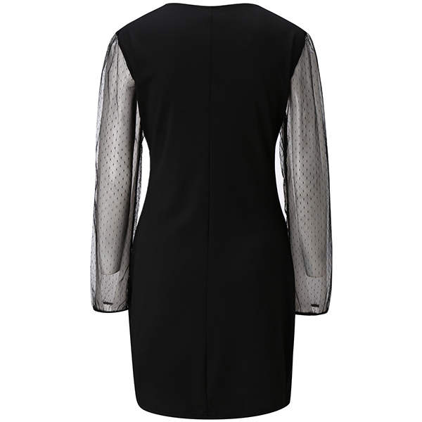 Sexy Gauze Spliced Long Sleeve V-neck Irregular Hem Slim Fit Dress