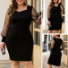 Sexy Gauze Spliced Long Sleeve V-neck Slim Fit Plus-size Dress