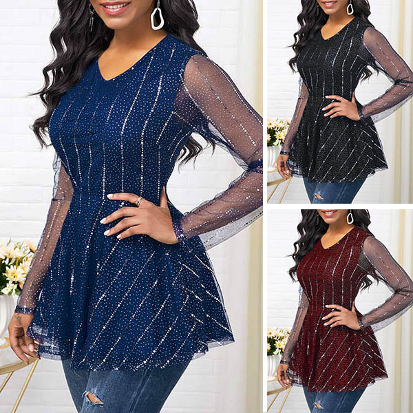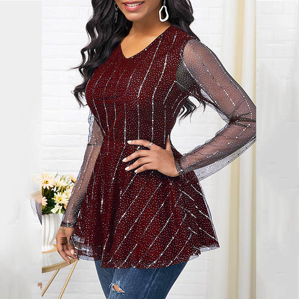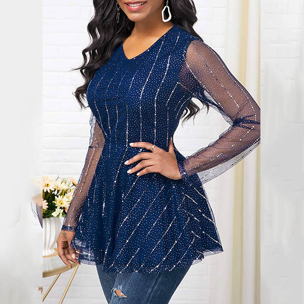Your style can have an update when you wear this wonderful top. The see-through gauze spliced long sleeve and v-neck design will exude your sexy and feminine side,while the unique waist design can better highlight your slender waist. Simply matching with a tight pants,then you can have a fashionable daily look.