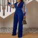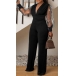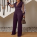Sexy Gauze Spliced Long Sleeve Wide-leg High-rise Jumpsuit