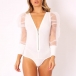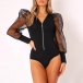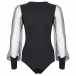 Sexy Gauze Spliced Long Sleeve Zipper V-neck Bodysuit