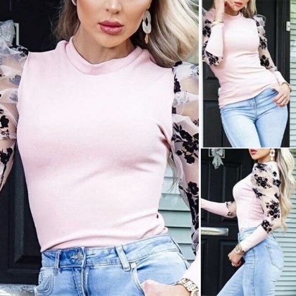 You are sure to catch more eyes when you wear this t-shirt. The gauze spliced puff sleeve design is the highlight,which makes this piece full of style and charm,while the fit silhouette design will portray your perfect body-line. Like this style? Then invite it to your wardrobe.