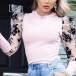 Sexy Gauze Spliced Puff Sleeve Mock Neck Slim Fit T-shirt