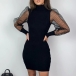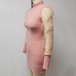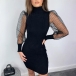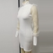 Sexy Gauze Spliced Puff Sleeve Turtleneck Slim Fit Knit Dress