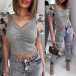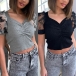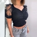Stylish and effortless flirty, this crop top is yearning for a place in your wardrobe. The gauze spliced puff sleeve and v-neck design make this piece look so attractive. We suggest you matching with a high waist bottom to achieve for a sexy and charming dress up.