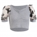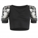 Sexy Gauze Spliced Puff Sleeve V-neck Crop Top