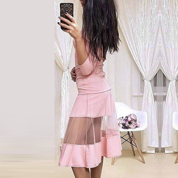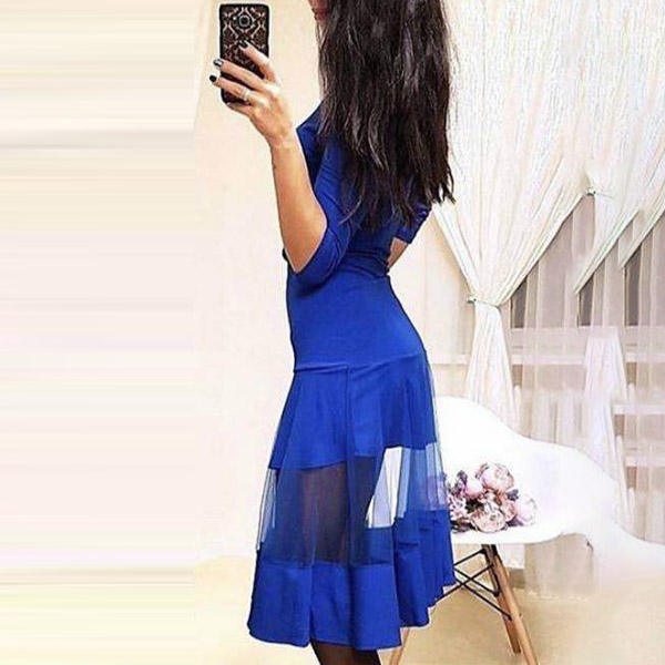 You have no need to wonder why all the eyes are focused on you when you don this dress. It is finished with 3/4 sleeve,round neck and a fit silhouette,this dress can flaunt off your slender figure. Moreover,the gauze spliced ruffle hem design will make this piece look more alluring. It is a good choice for your fancy events.