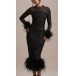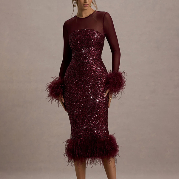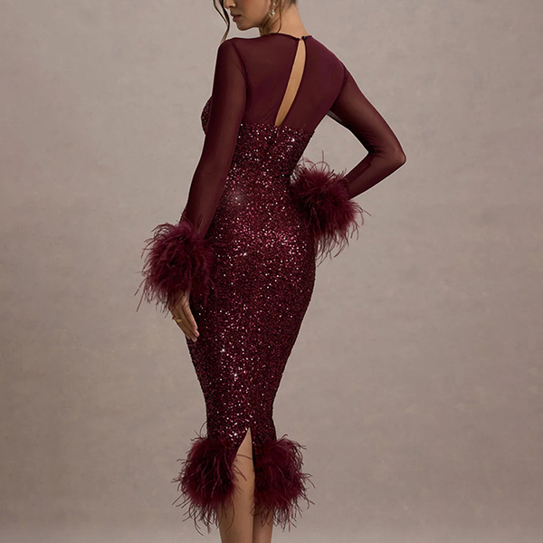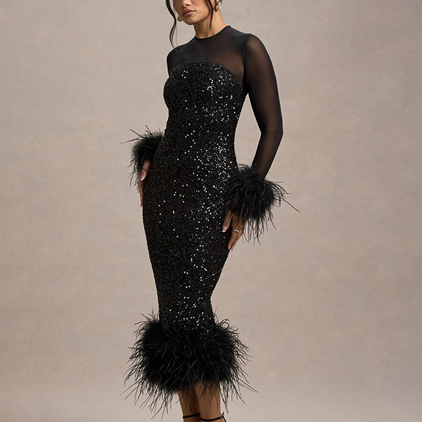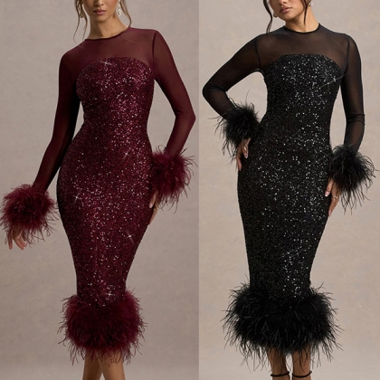 Sexy Gauze Spliced Sequined Plush Bodycon Party Dress