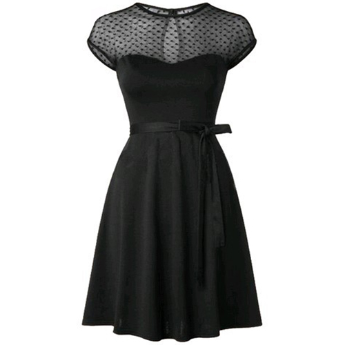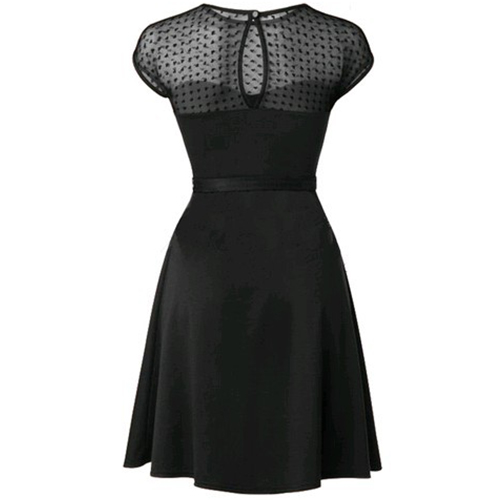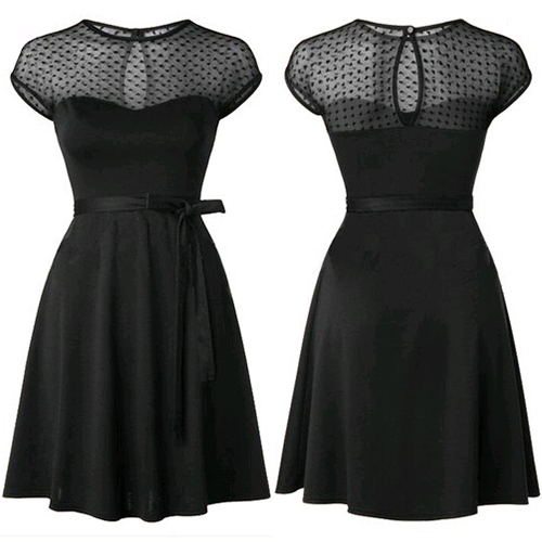 Modestly stylish,while still maintaining its alluring feminine appeal, that's why we suggest you this dress! Designed with short sleeve,round neck and a clean silhouette,delicate and elegant,and its gauze spliced for more appeal. It is a wise investment for you to add this little item to your wardrobe ensemble.