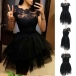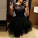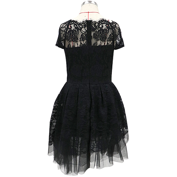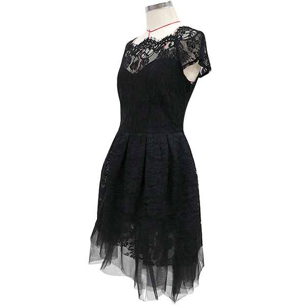 Sexy Gauze Spliced Short Sleeve Round Neck High Waist Lace Party Dress