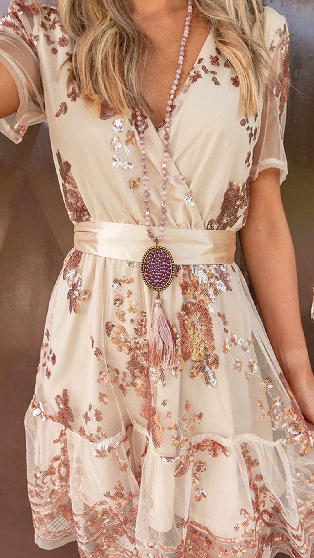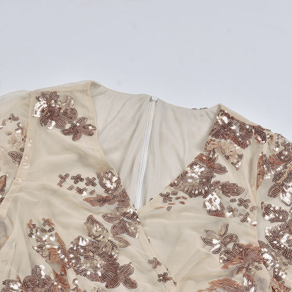 If you're in search for a dress that can easily make you be the focus,then look no further than this piece. The deep v-neck,gauze spliced and sequin details make this piece look so sexy,alluring and flirty,while the high waist design can showcase your slender figure. So why not save this beautiful dress for your fancy events like parties and gatherings?