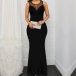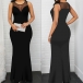 This striking maxi dress features a sleeveless design and a fishtail silhouette. The standout detail is the gauze splicing, which adds a sheer, alluring element to the look. It can be dressed up with heels and statement jewelry for a formal occasion, or styled more casually with flat sandals for a relaxed, summer-inspired look.
