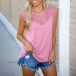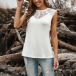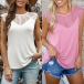 Sexy Gauze Spliced Sleeveless Round Neck Solid Color Tank Top