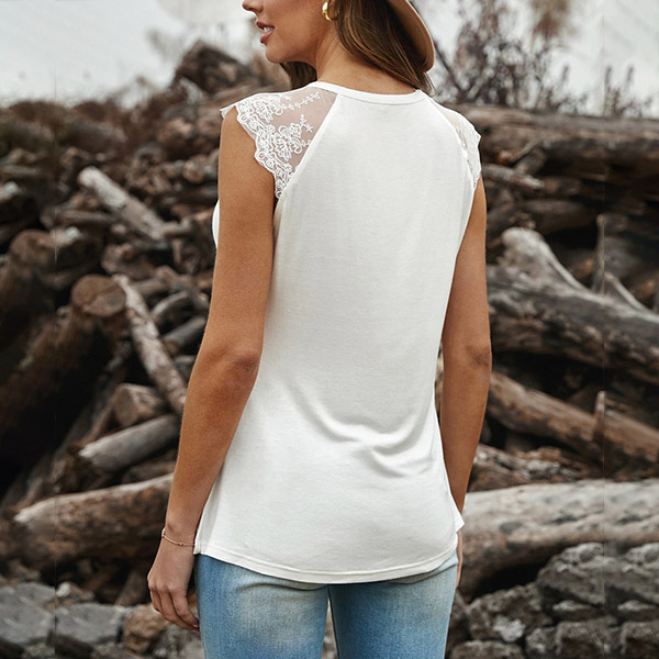 Crafted from soft and breathable fabric,with sleeveless and round neck design,this piece can ensure you a cool and comfortable day. Moreover,the see-through gauze spliced design will lend you a dash of sexy and flirty vibes. Try to match with your favourite pants to start our wonderful time.