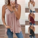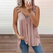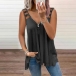 Sexy Gauze Spliced Sleeveless V-neck Solid COlor Loose Top