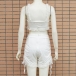 Your sexy and flirty style can have a full display in this two-piece set. It consists of a backless v-neck sling crop top and a high waist shorts,designed with gauze spliced details,this two-piece set definitely can flaunt off your perfect curve while it exudes your charming feminine appeal.