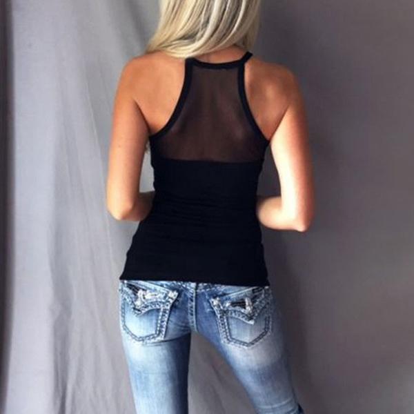 Thanks to the flattering black tone and fit silhouette design,this top can better highlight your perfect body-line. Moreover,the gauze spliced design will lend you a dash of sexy and flirty vibes. For these summer days,this cozy yet feminine top can be your wise choice.