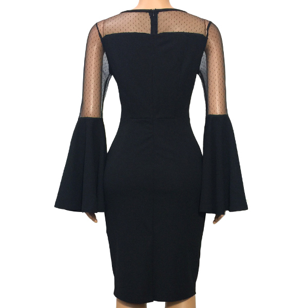 Sexy Gauze Spliced Trumpet Sleeve Round Neck Slim Fit Dress
