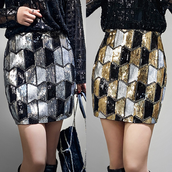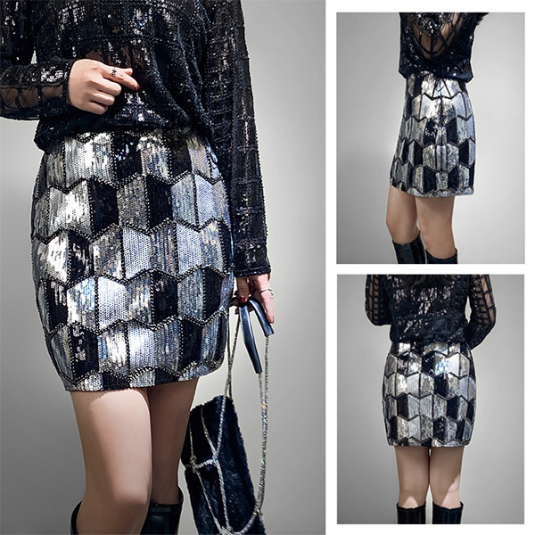 Sexy Geometric Sequined Mini Skirt
