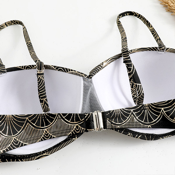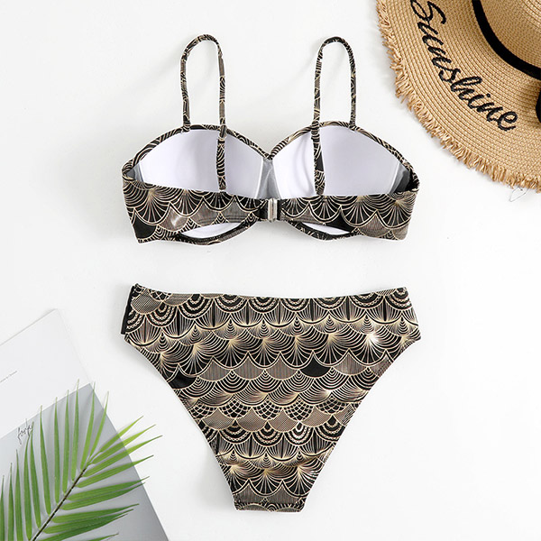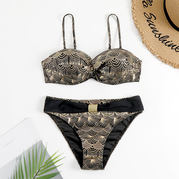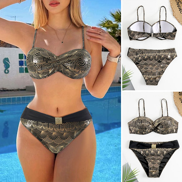 Sexy Gold Accents High-Waisted Two-piece Bikini Set