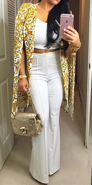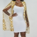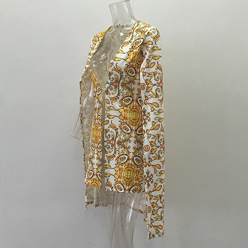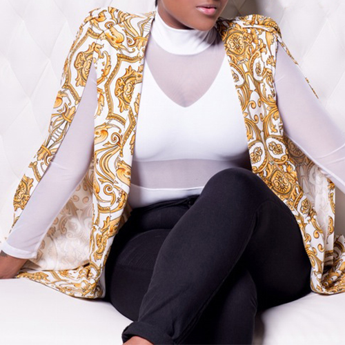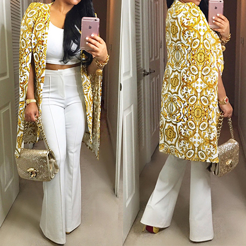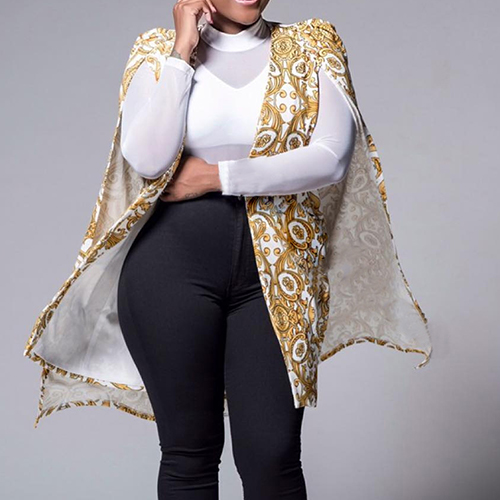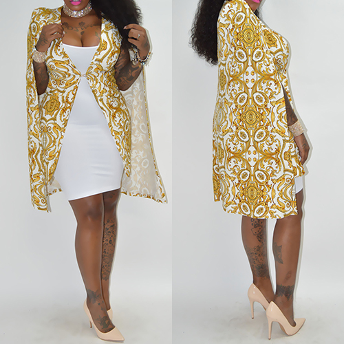 Wow! What a gorgeous cardigan it is! Boasting chic and noble golden printed pattern, with a shawl