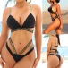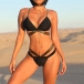 Sexy Gold Strap Spliced Backless Bikini Set