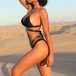When you are walking on the beach with this bikini set,you can easily be the pleasant sight to draw more attention. The gold strap spliced design makes it look more alluring and attractive. You can consider adding a body chain to achieve for a more stunning beach look.