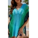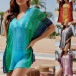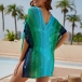 Sexy Gradient Color V-neck Batwing Sleeve Hollow Out Knitted Swimming Cover-up Shirt