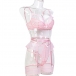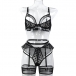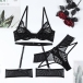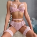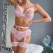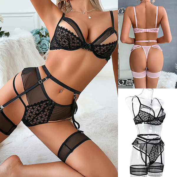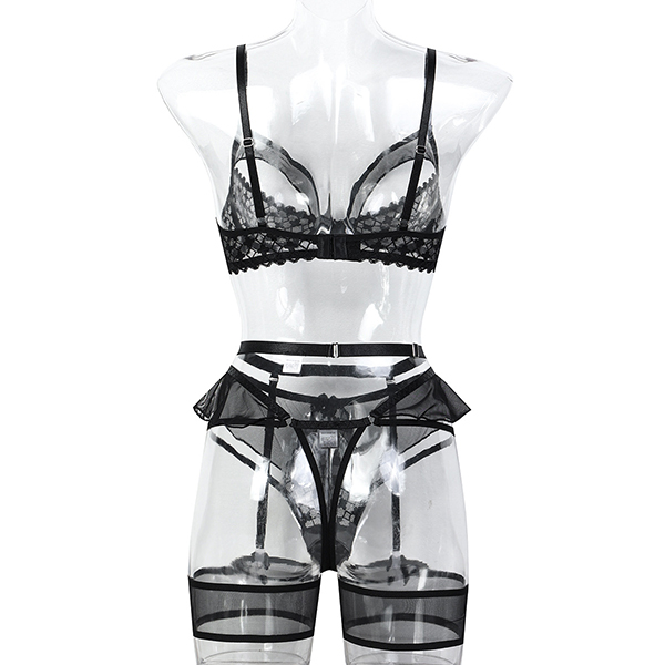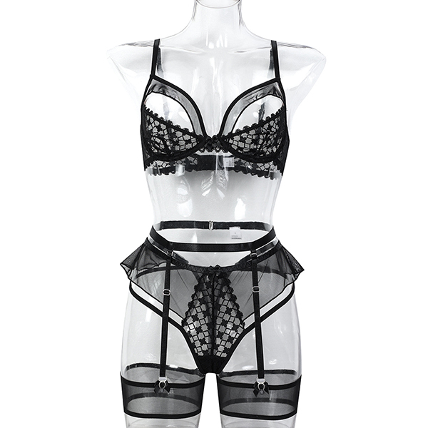 Sexy Half-Cup Lingerie Set - 3-Piece Hollow Mesh Design with Wave Pattern and Semi-Transparent Fabric