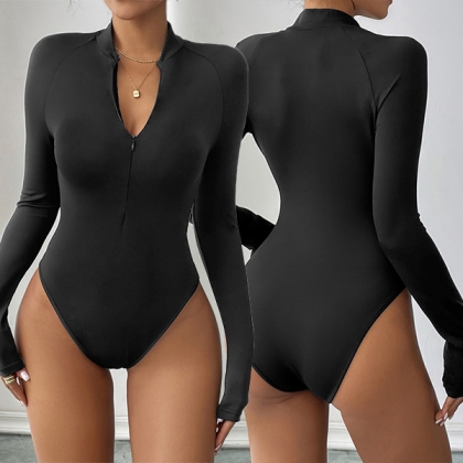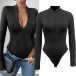Sexy Half-zip V-neck Long Sleeve Bodysuit