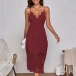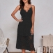 Look at this dress~ The backless style enhances the sultry and elegant vibe of the dress, while the lace-up detailing adds a trendy and chic touch. The hollow out lace fabric creates a delicate and intricate pattern that exudes femininity and sophistication. Whether you're attending a special event, a night out, or a romantic date, this dress is sure to make you feel confident and glamorous. Perfect for this summer.