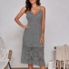 Sexy Halter Neck Backless Lace-up Hollow Out Lace Dress