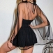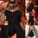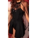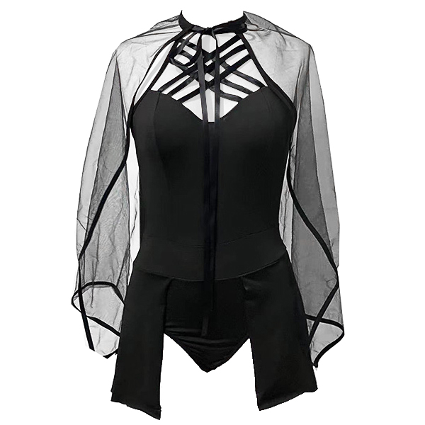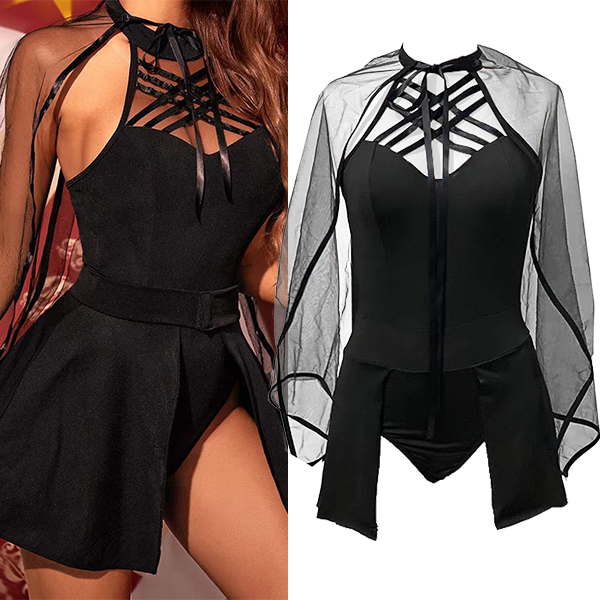 Sexy Halter Neck Criss-cross Cut Out Lingerie Bodysuit with Gauze Cape for Cosplay