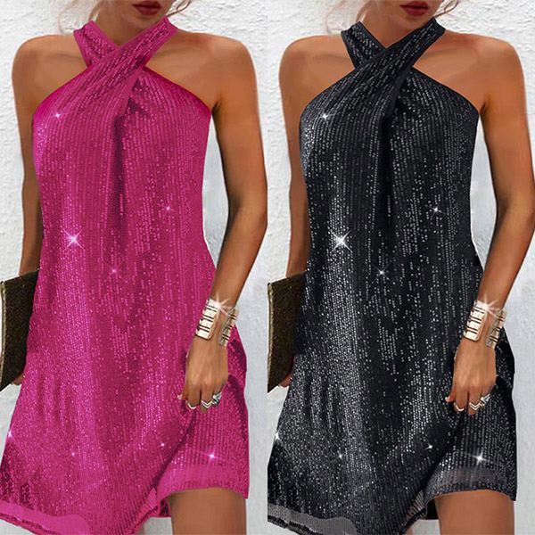 Sexy Halter Neck Open-shoulder Sequin Dress