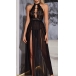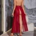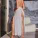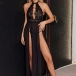 Sexy Halter Neck Rhinestone Heart-ring Front Cutout High-slit Nightwear Dress