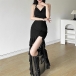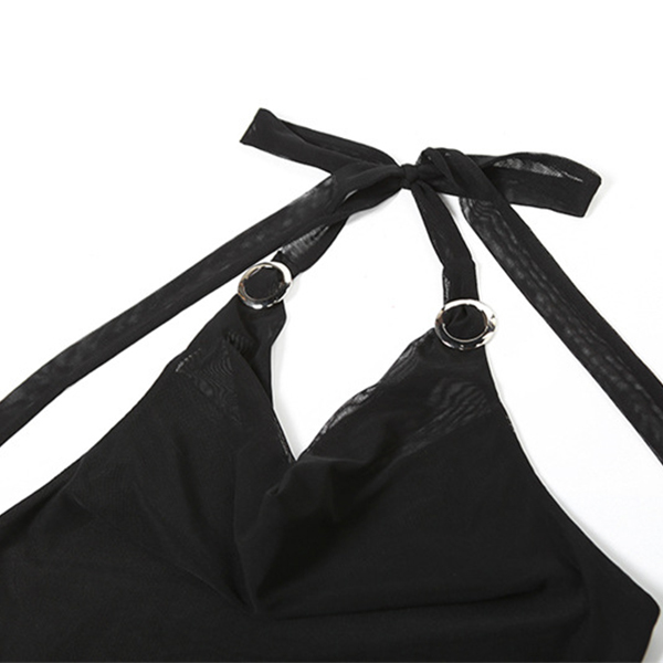 Sexy Halter Neck Sleeveless 3D Floral Backless Ruffle Irregular Hemline Black Dress