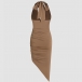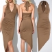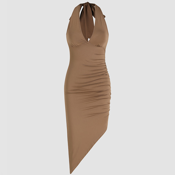 Sexy Halter Neck V-neck Backless Irregular Hemline Bodycon Dress