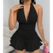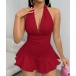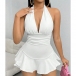 Sexy Halter Neck V-neck Backless Ruffle Hemline Romper