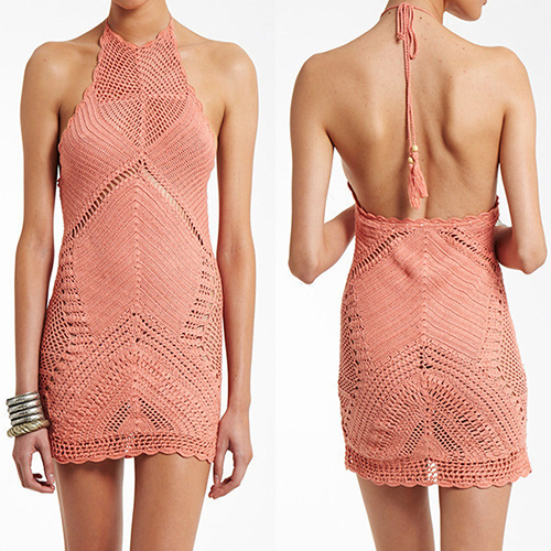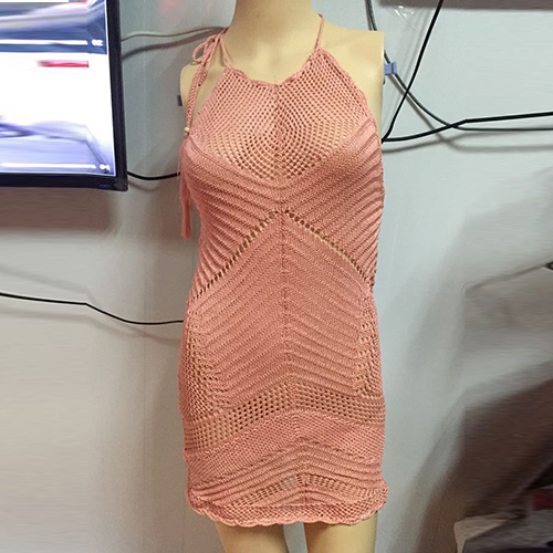 Sexy Halter Smock Hand-Crocheted Stretched Knitted Mini Dresses