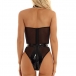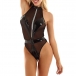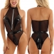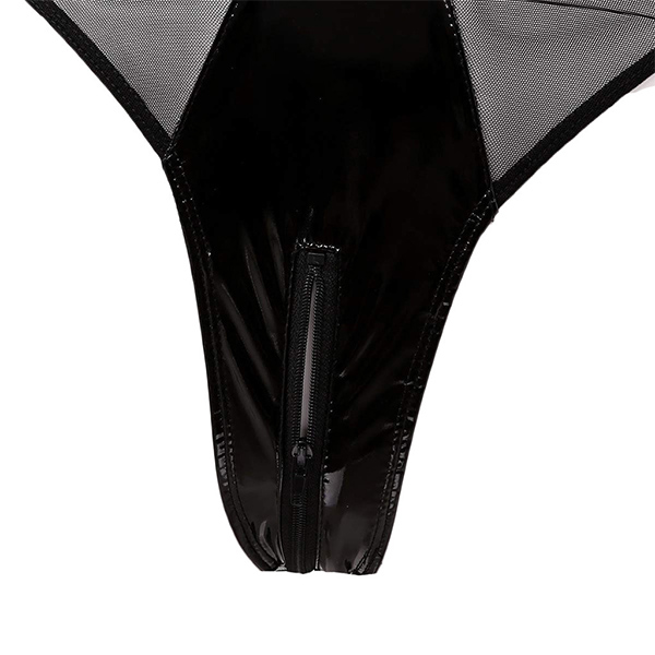 Sexy Halterneck Backless Chain Gauze Spliced Artificial Leather Bodysuit