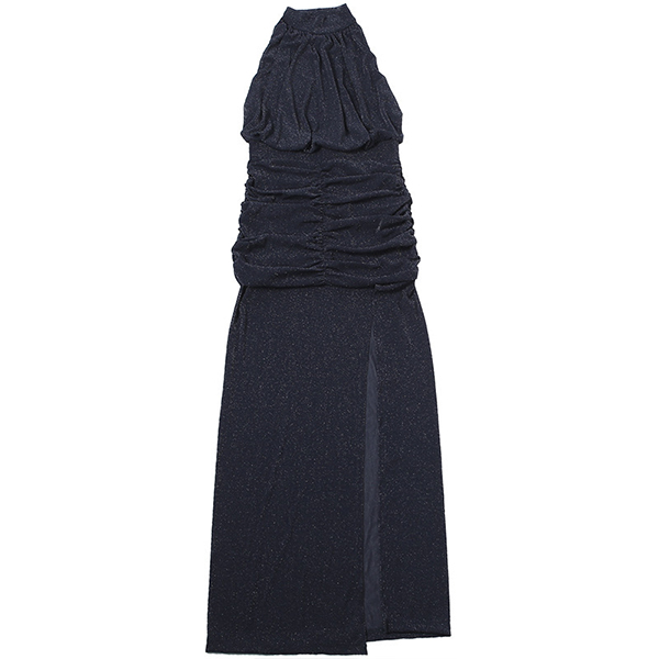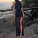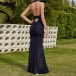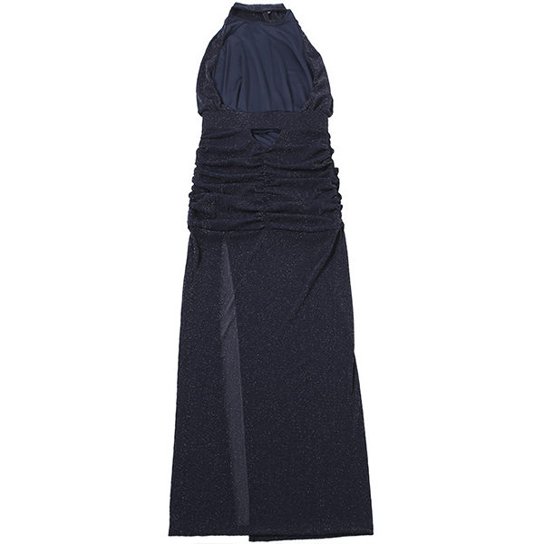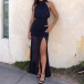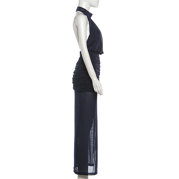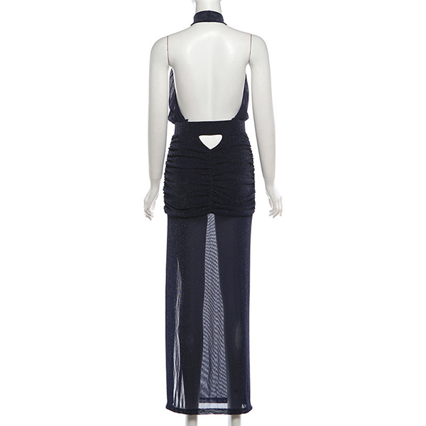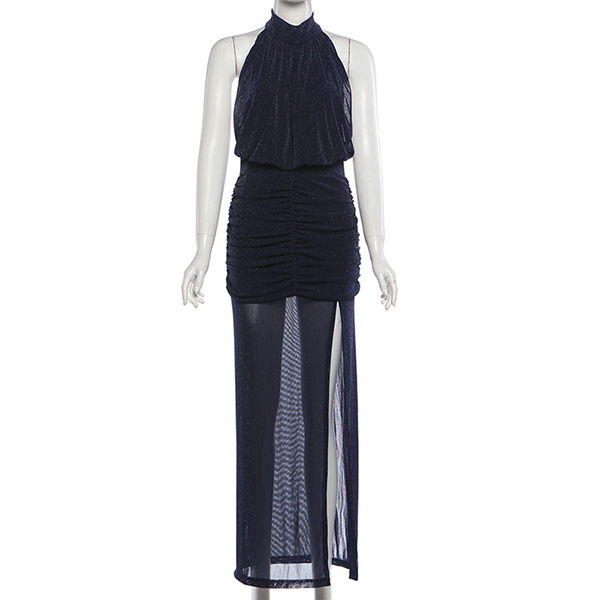 Sexy Halterneck Backless Sleeveless Side Slit Gauze Spliced Party Dress