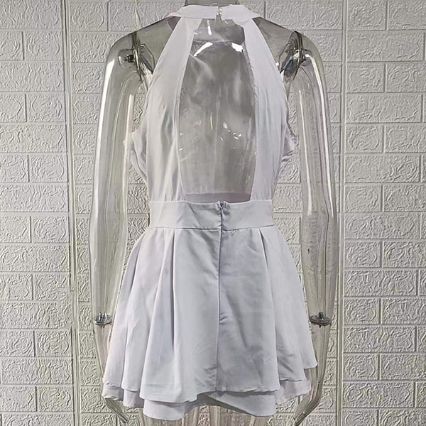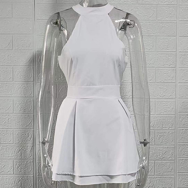 This dress features halterneck design, backless detail, and a crisp white color for a sexy and stylish look.