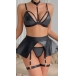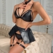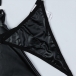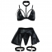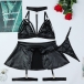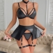 Sexy Halterneck Cutout Ruffle Artificial Leather PU Four-piece Lingerie Set