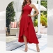 Sexy Halterneck Sleeveless Ruffle Irregular Hemline Dress